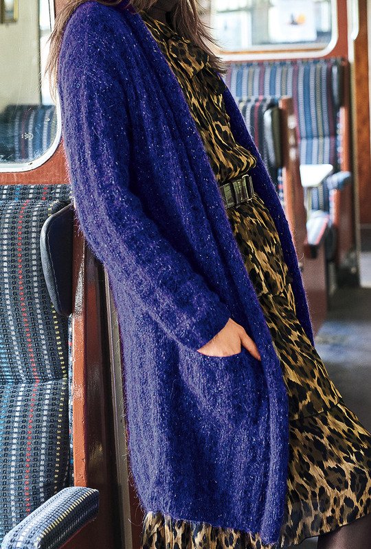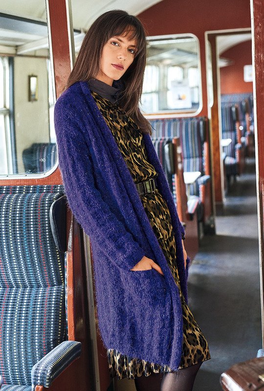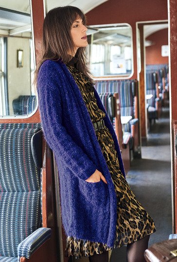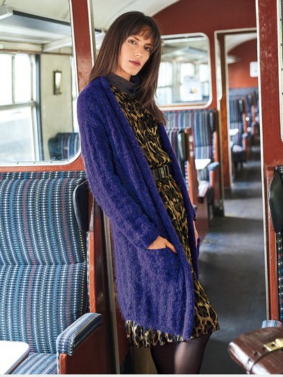 Dramatische Farbe, schlicht das Muster: Karostrukturen aus rechten und linken Maschen geben der lilafarbenen verschlusslose Longjacke die modisch-zurückhaltende Optik. Eingrifftaschen mit verdecktem Taschenbeutel lassen auch mal ein Taschentuch darin verschwinden. Der breite Schalkragen wird an den Vorderteilen gleich mitgestrickt. Das Muster ist recht einfach zu merken und lässt einen beim Stricken mit 4,5er Nadeln auch schnell vorankommen. Eine Jacke, die du sicher bald nicht mehr aus deiner Grundgarderobe missen möchtest. Die Anleitung gibt es in den Größen 36 – 40 und 42 – 46.
