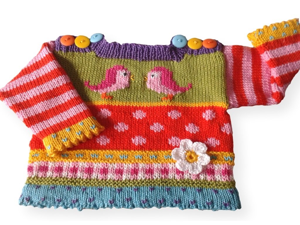 Ein zuckersüßer Babypullover mit tollen Mustern. Damit macht das Baby noch süßer und die Farben sind genau das Richtige für trübe Herbst- und Wintertage.