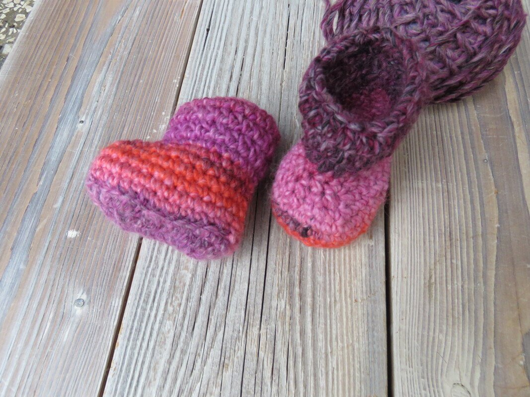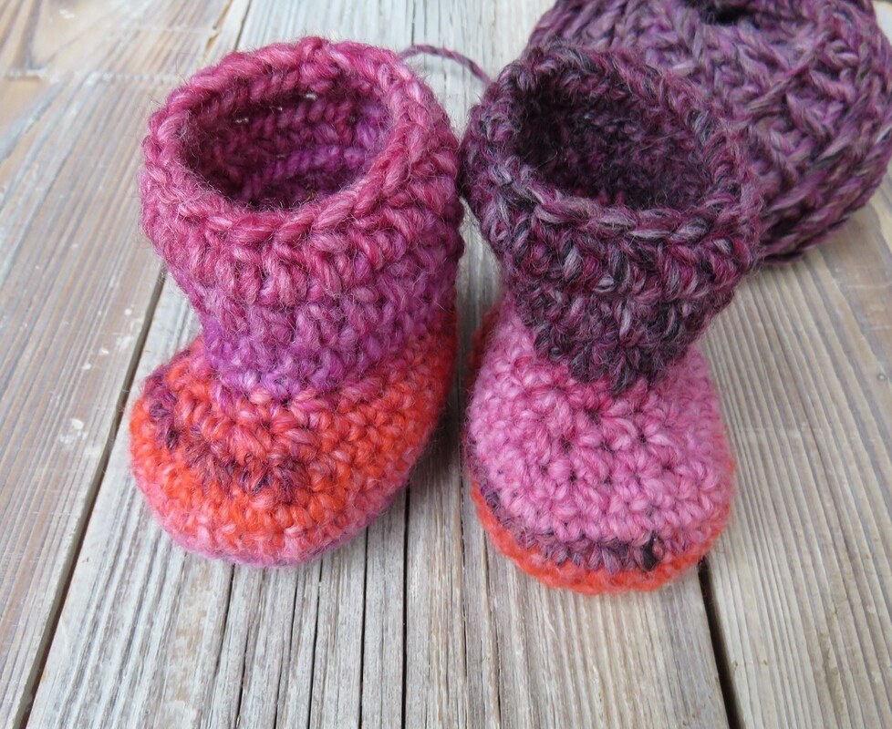 Häkelanleitung für ganz einfache, kuschelige Babyschuhe. Ob bunt mit Farbverlaufsgarn oder einfarbig, diese Stiefelchen für die Allerkleinsten sind ganz einfach und schnell gehäkelt und sind gute Resteverwerter.
