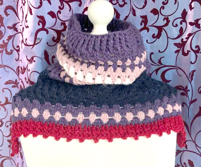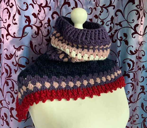 Kragen Lisbeth aus 5 Farben...flott & einfach gehäkelt..herrlich warm am Hals...da der Kragen auch recht hoch ist, kann man den Kragen auch schön über die Ohren ziehen.