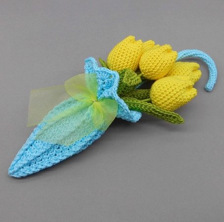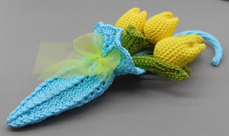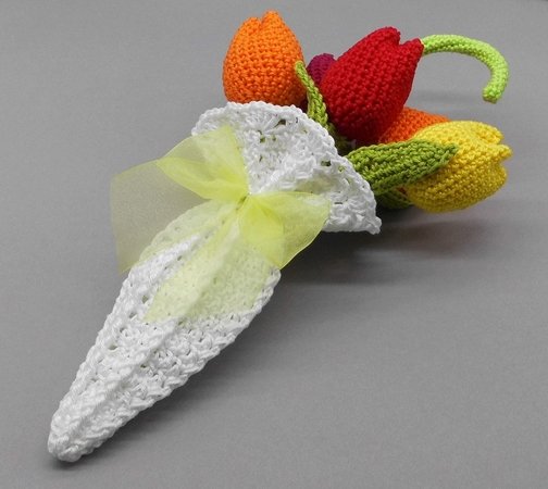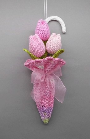 Häkel-Deko Tulpen im Regenschirm für Tür und Tisch - aus Wollresten