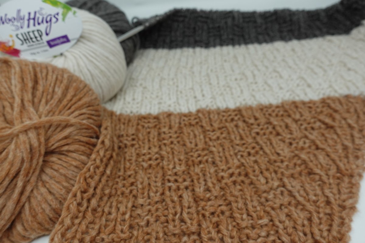 Hinweis: Die Qualität „Woolly Hugs SHEEP“ ist ein angerauhtes Bändchengarn, das sehr weit läuft! Wer die Qualität austauscht sollte unbedingt auf gleiche Eigenschaften achten, da das Tuch ansonsten zu schwer werden könnte und nicht so locker fällt.