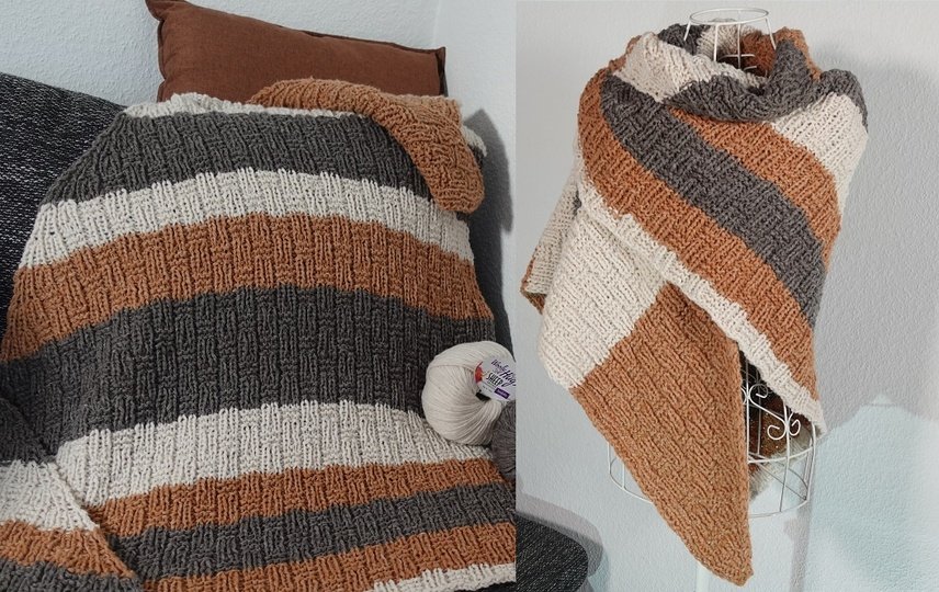 Das Muster ist auf beiden Seiten sehr schön und ist deshalb für ein Tuch perfekt geeignet