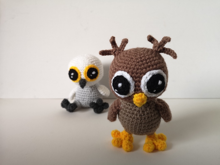 Die niedliche Babyeule sieht in verschiedensten Farben gut aus. Mit dünnerem Garn ist sie auch für ein Mobile geeignet.
