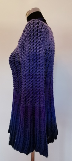 Er wird im Raglanstil in einem Stück von oben nach unter gehäkelt, die Ärmel werden extra angehäkelt.