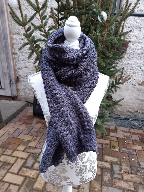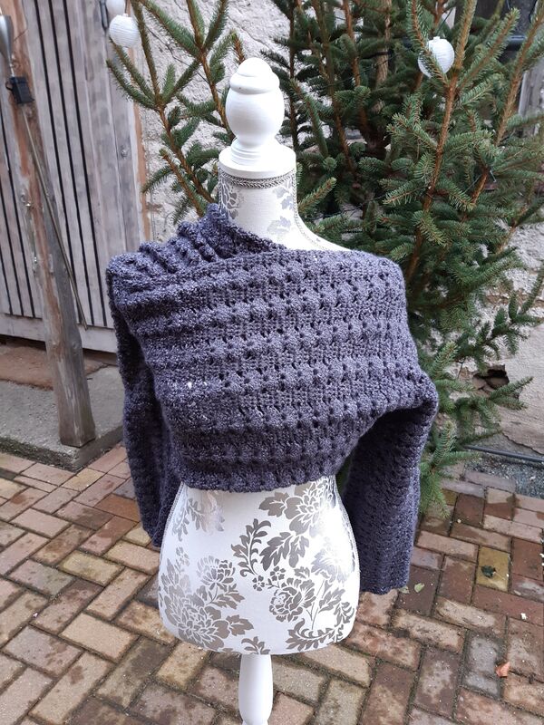 Er kann in jeder beliebigen Größe gehäkelt werden und ist auch für Anfänger geeignet, das Muster prägt sich schnell ein und in kurzer Zeit ist der Ärmelschal fertig gehäkelt.