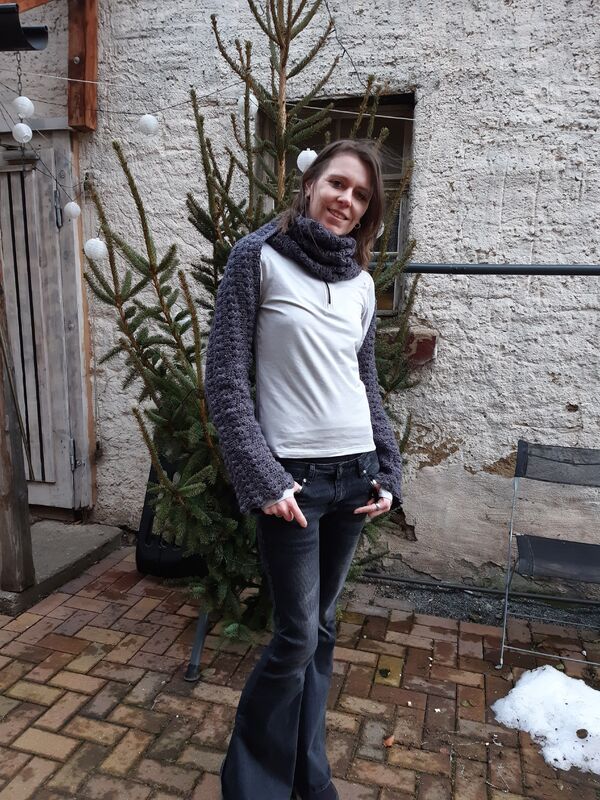 dieser Ärmelschal ist ein echter Hingucker, der sich in vielen Varianten tragen lässt oder auch einfach als normalen Schal.