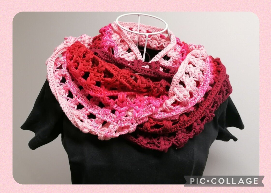 Wenn du mit den angegebenen Materialien und genau nach Anleitung häkelst, dann wird der Loop etwa 70 cm lang (zusammengelegt) und etwa 28 cm breit.