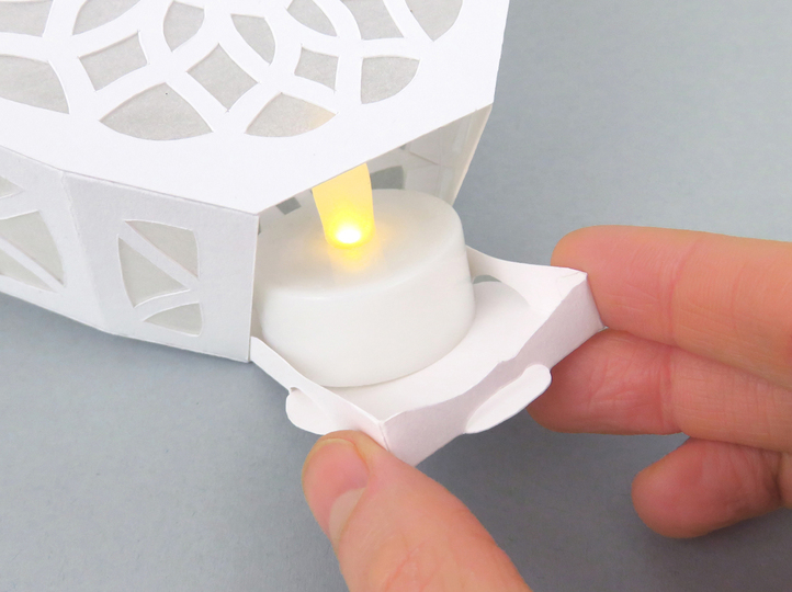 Neben dem handelsüblichen Transparentpapier für Bastelarbeiten kannst du jede Art von dünnen Papieren verwenden wie z. B. Seide oder Krepppapier, aber auch durchsichtige Stoffe, die sich leicht schneiden und kleben lassen. Da alle Materialien unterschiedlich viel Licht durchlassen, prüfe vorher mithilfe deines LED-Teelichts, ob das Papier bzw. der Stoff die gewünschte Transparenz aufweist.