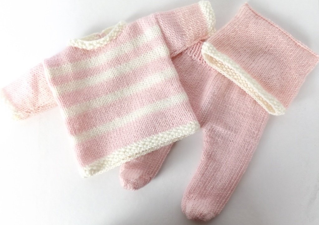 Dieser süße Pullover mit Mütze und Strumpfhose läßt jedes Mädchenherz höher schlagen und ist ein tolles Geschenk für Puppenmütter!