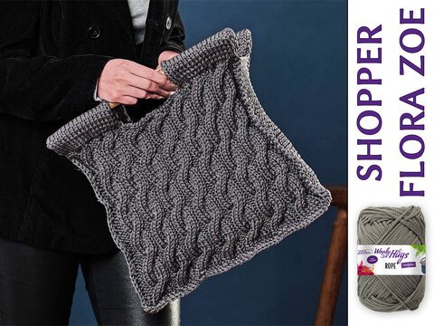 die fertig gestrickte Umhängetasche ist etwa 23/53 hoch x 25 cm breit