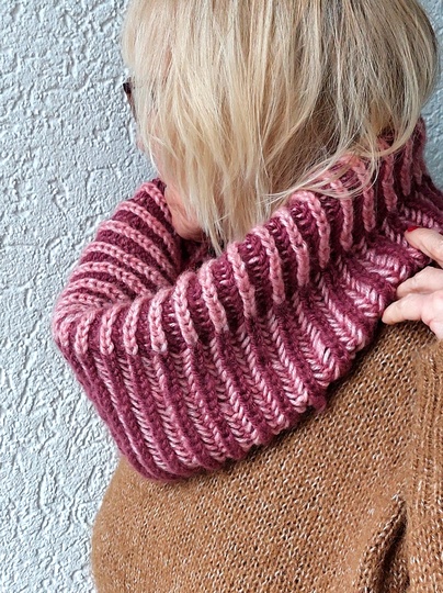 Wir stricken den zweifarbigen Loop "Duoletto" im Halbpatent.