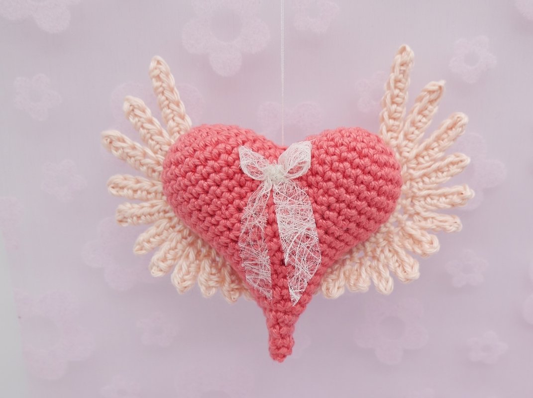 Die Anleitung erklärt mit vielen Fotos wie du das Deko Herz häkeln kannst.
