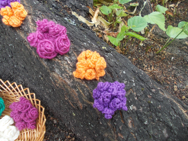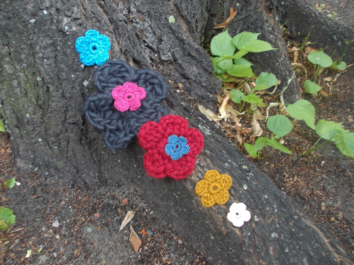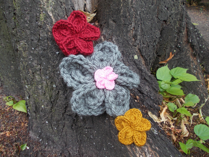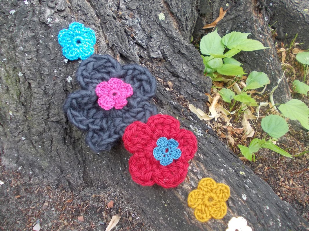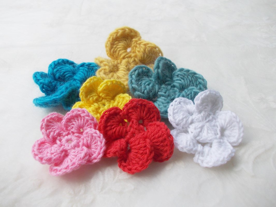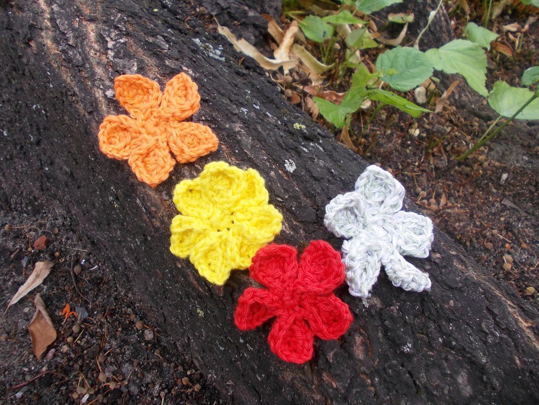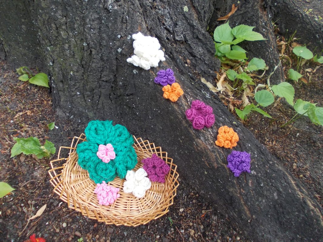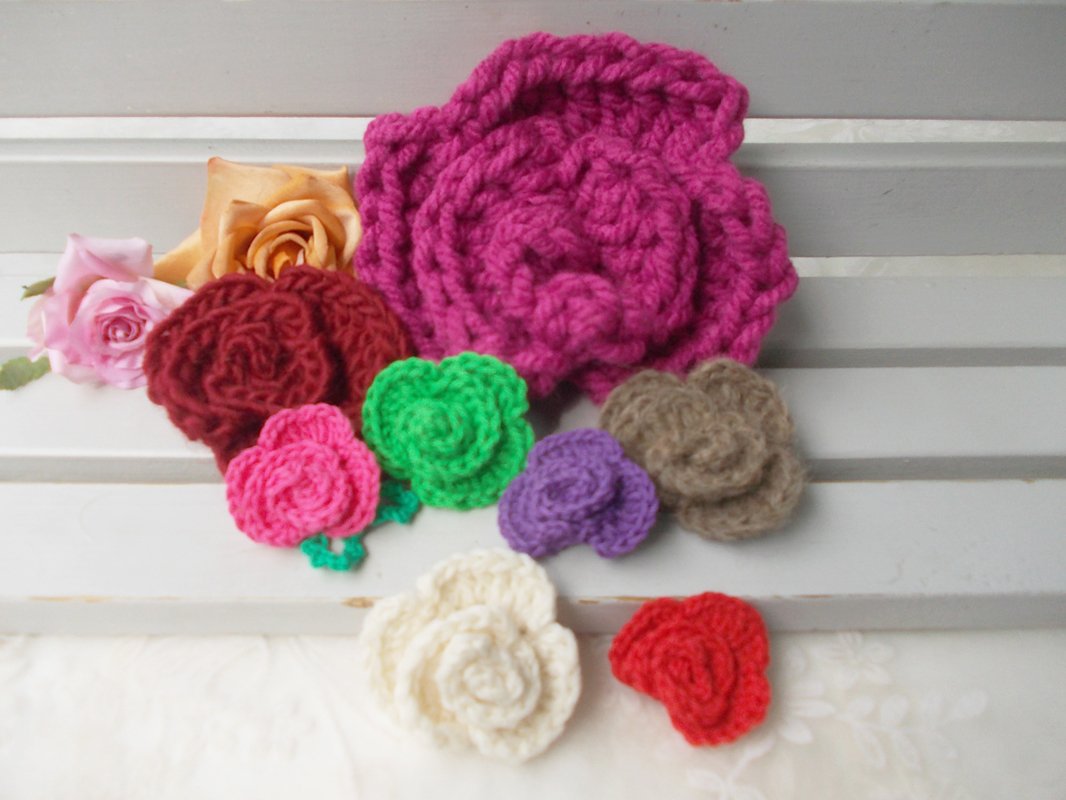 - 15 verschiedene Häkelblumen (Eigenentwürfe, Design by lessig fashion) z. B. Rosen, Flügelblumen, Kristallblumen, Blütenfaltenblumen, Rosenknospenblumen, Pufferblumen) Diese Namen habe ich selbst gewählt, da ich auch die Blumen selbst entwickelt habe.