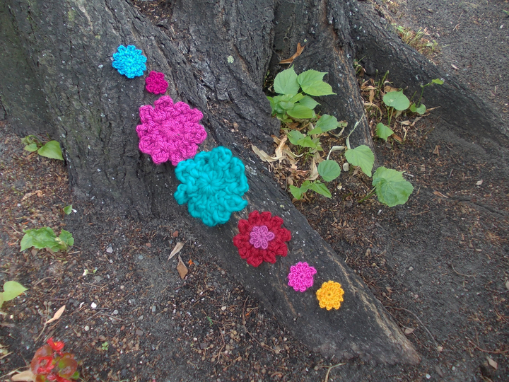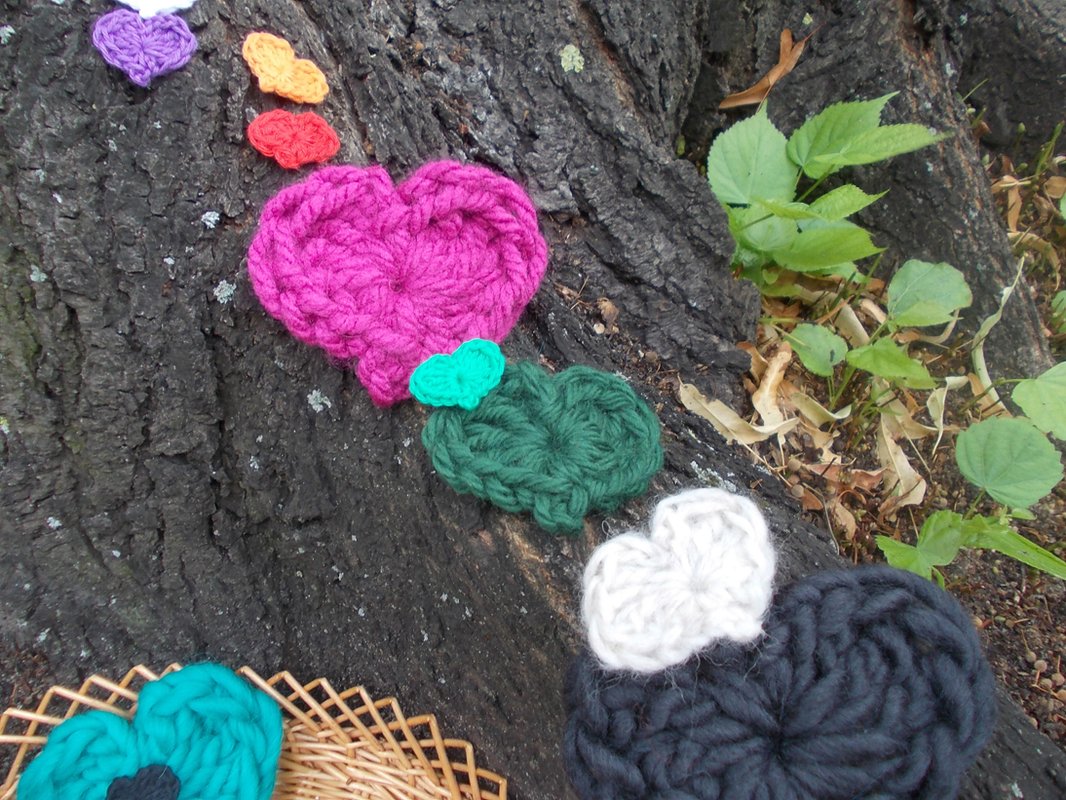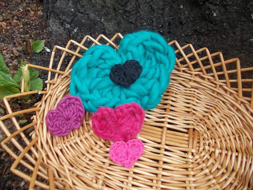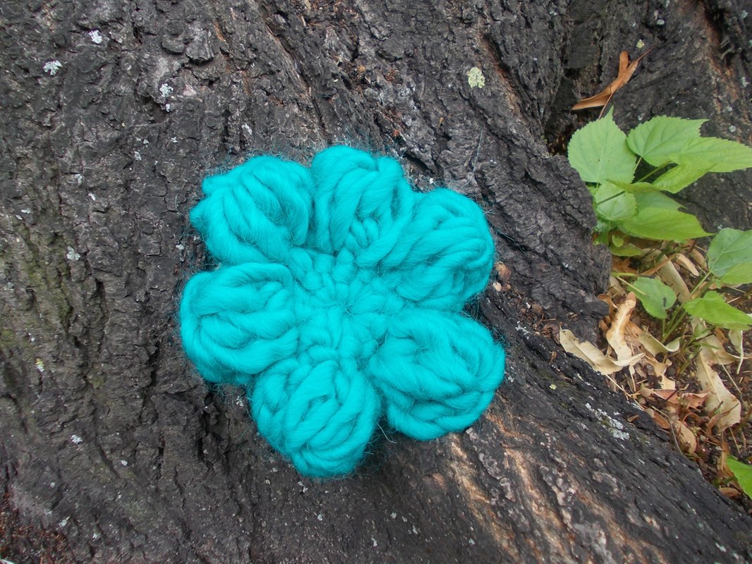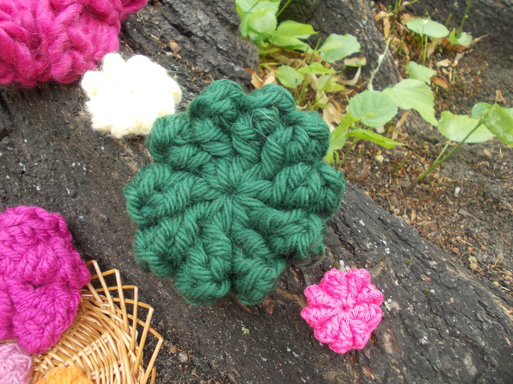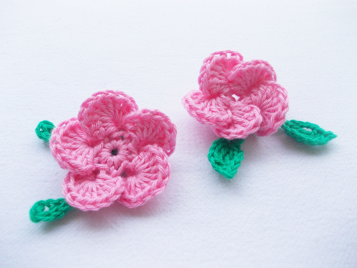 Auf den zahlreichen Bildern sind die Blumen und Blätter in verschiedenen Varianten zu sehen und - wie von mir auch in meinen anderen Anleitungsangeboten erwähnt - gehäkelt aus filigranem Häkelgarn und dicker Wolle.