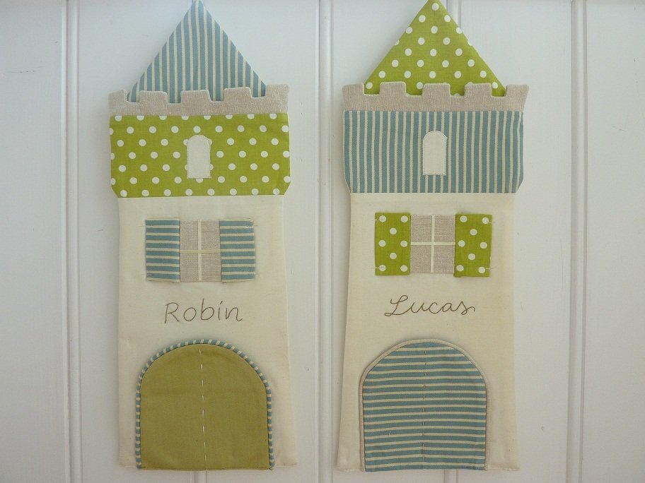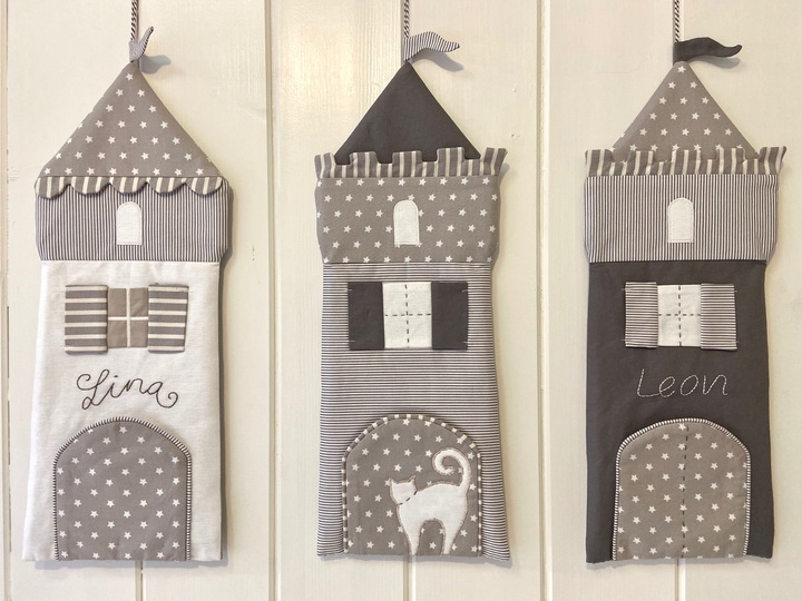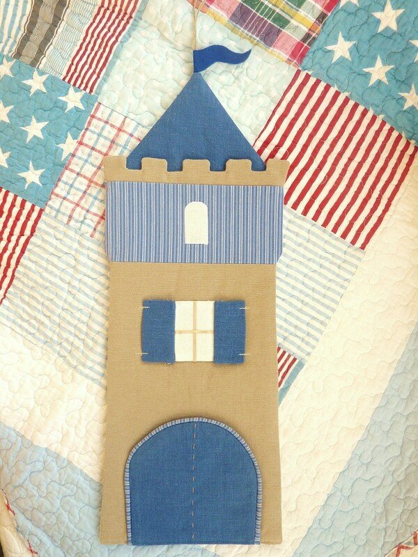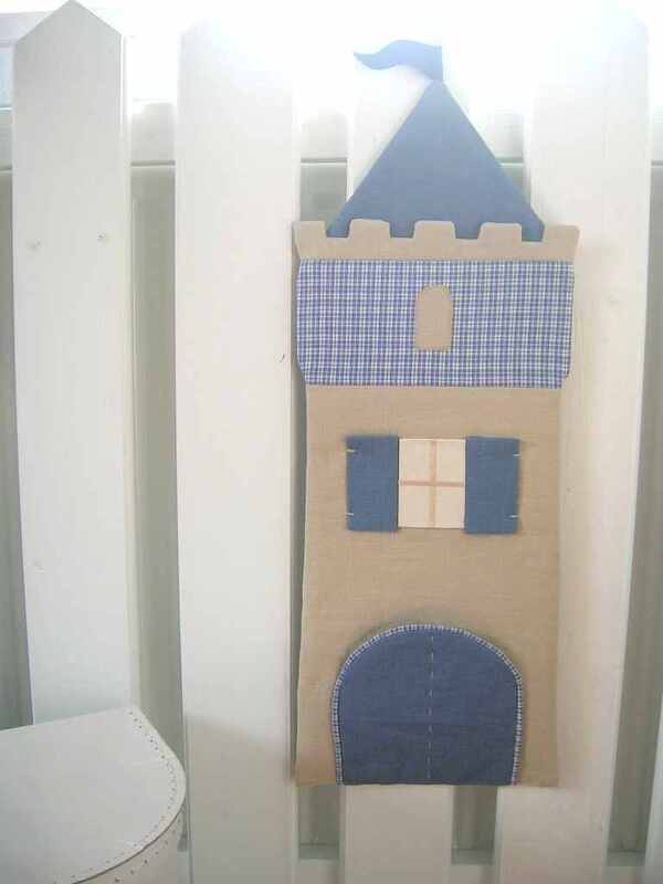 Das aufgesteppte Tor der Ritterburg kann als Versteck für kleine " Schätze" genutzt werden. In der Nähe des Bettes angebracht, findet hier die abendliche Lektüre in Form eines Buches ihren Platz.
