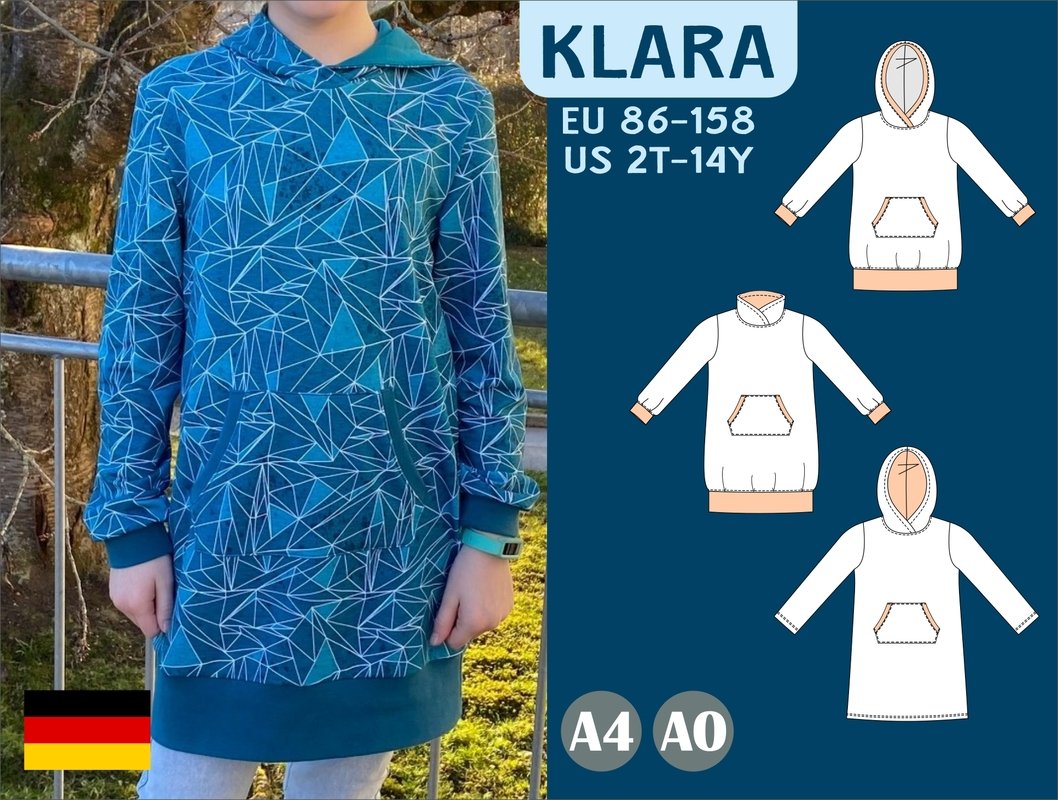 Sichere dir jetzt das Schnittmuster „Klara“ und kreiere einen bequemen Longhoodie oder ein Sweatkleid für dein Kind!