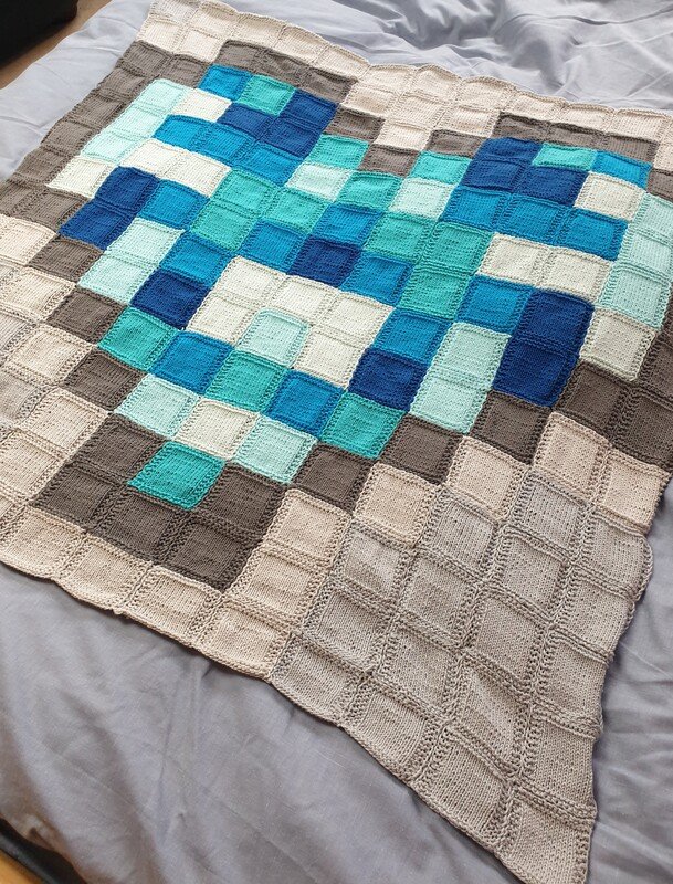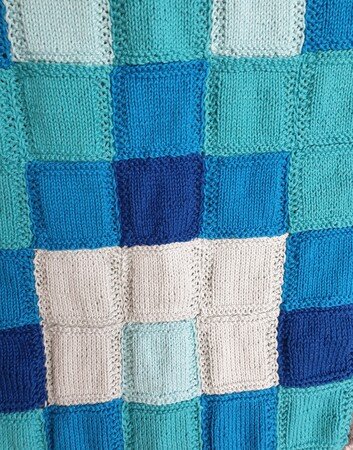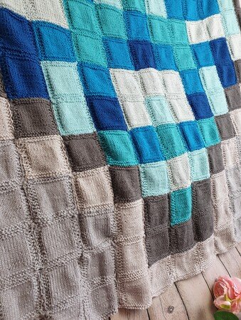 Die Decke eignet sich super für eine leichte Strickarbeit da die Quadrate super nebenbei gearbeitet werden können, während man einen Film geniesst oder sich mit Familie und Freunde unterhält