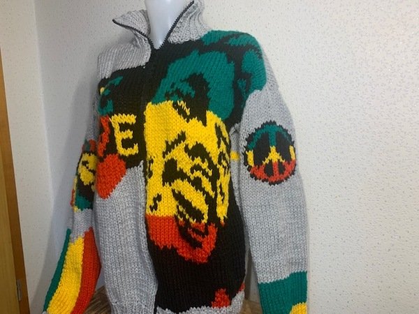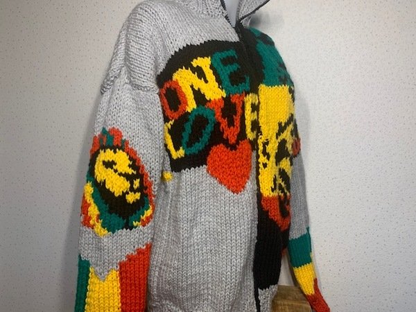 Ein absoluter Hingucker, der schnell ein Lächeln in jedes Gesicht zaubert. Egal ob als Jacke oder Pullover, dieses coole Teil läßt einfach keine schlechte Laune zu und ruft selbst bei grauem Wetter ein kleines Urlaubsfeeling wach. Sommer, Sonne, Reggaefeeling und dem Alltagsstress mal etwas Gelassenheit überstreifen...