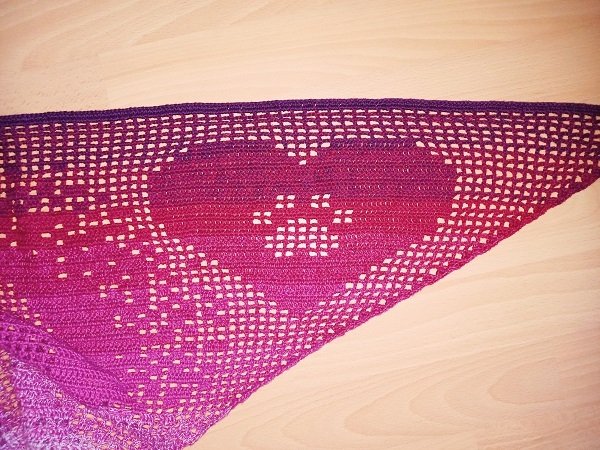 In meiner Anleitung findest du eine genaue Erklärung zur Filettechnik sowie ein Zählmuster in 2 verschiedenen Größen :-) Der Beginn des Tuches wird mit Bildern genau erklärt.