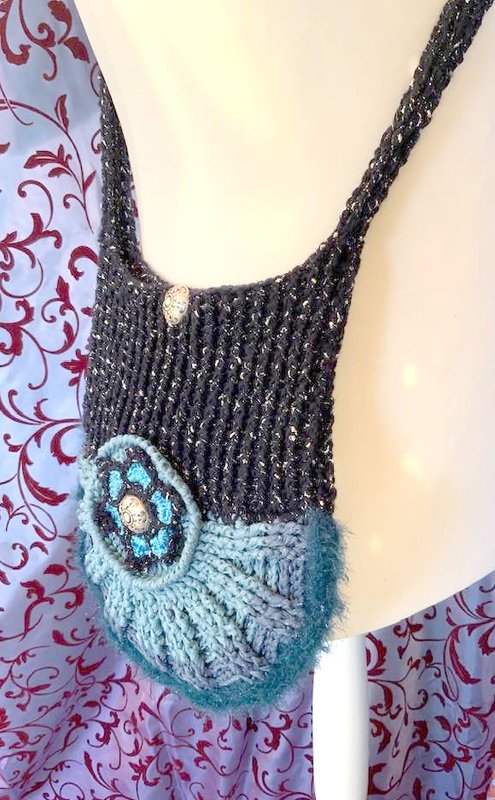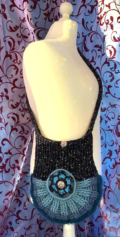 Die gehäkelte Umhängetasche "BALU" mit dem halbrunden Anfangsteil.