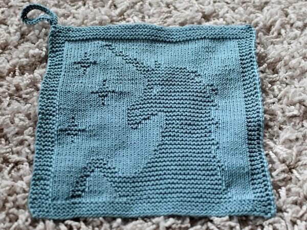 Dieser Waschlappen ist ein tolles Accessoire für kleine und große Einhorn-Fans! Mit der angegebenen Babywolle wird er ganz weich und ist sehr angenehm im Gesicht. Das Motiv kann auch als Spültuch gestrickt werden, zum Beispiel mit einem Baumwollgarn. Nachgestrickt werden kann der Waschlappen ganz einfach nur mit rechten und linken Maschen.