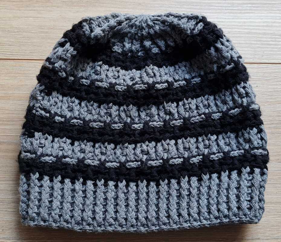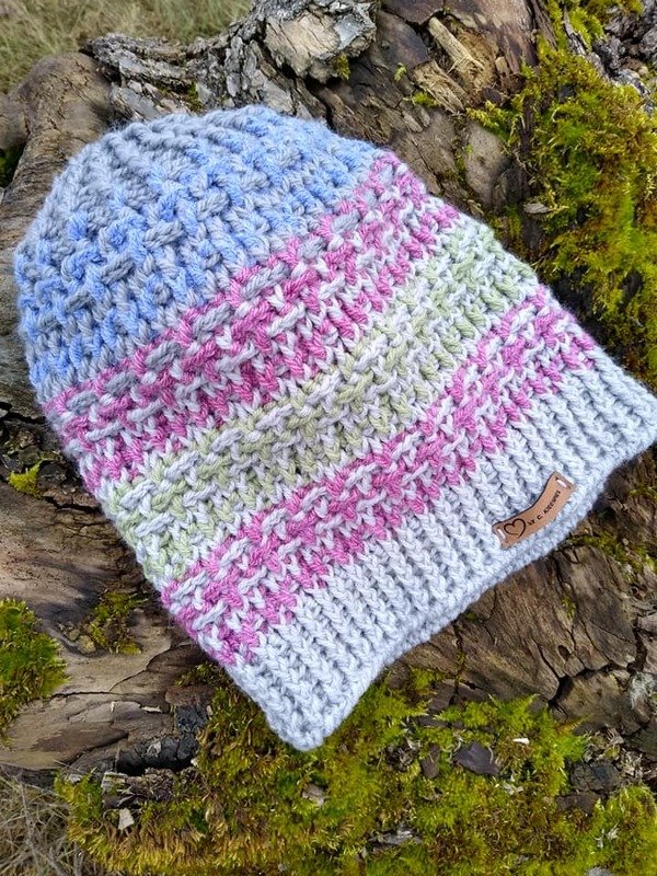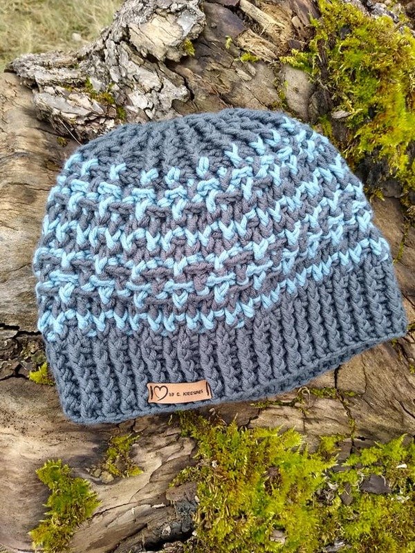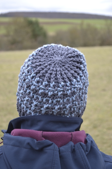 Verwendest du unifarbene Mützenwolle oder ein Farbverlaufsgarn, erhältst du eine schlichte Mütze mit „männertauglichem“ Muster. Bei Farbverlaufsgarn empfehle ich einen sanften Verlauf, damit das Muster nicht geschluckt wird.