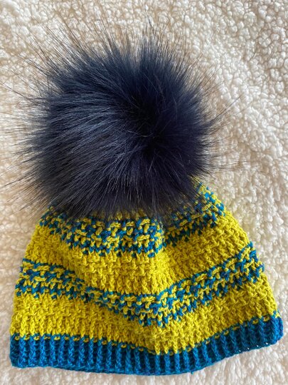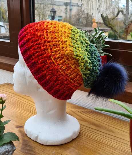 Die Mütze kann wie immer mit jedem Material gearbeitet werden.