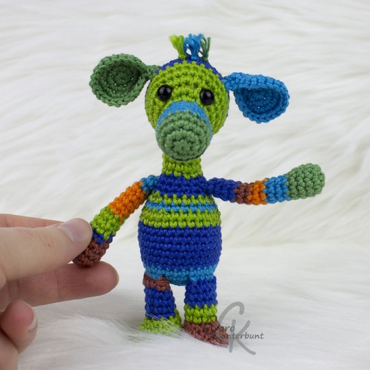 Der Verkauf der Häkelfiguren, die mit Hilfe dieser Anleitung erstellt wurden, ist unter folgender Voraussetzung gestattet: Der Käufer dieser Anleitung fertigt das Produkt in einer geringen Stückzahl in Handarbeit an und verweist auf mich „CaroKunterbunt“ als Designer. Dieser Hinweis wird sowohl der Artikelbeschreibung als auch der verkauften Figur hinzugefügt.