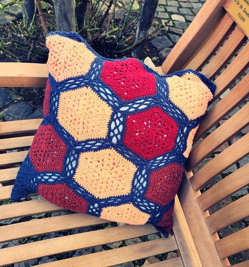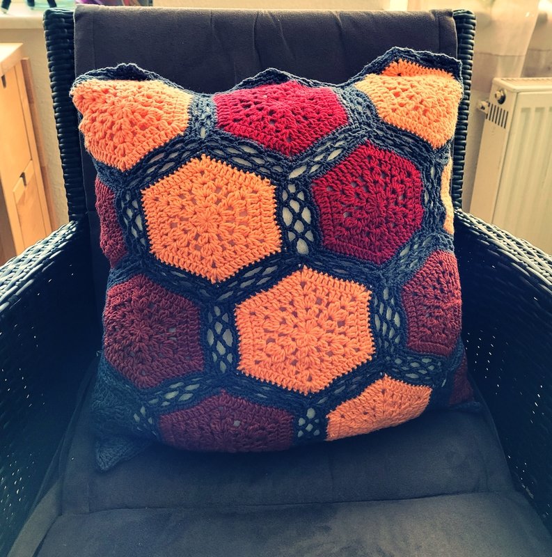 Ein Kissen aus Sechsecken ist eine tolle Möglichkeit, deine Wohnumgebung richtig schön zu gestalten.