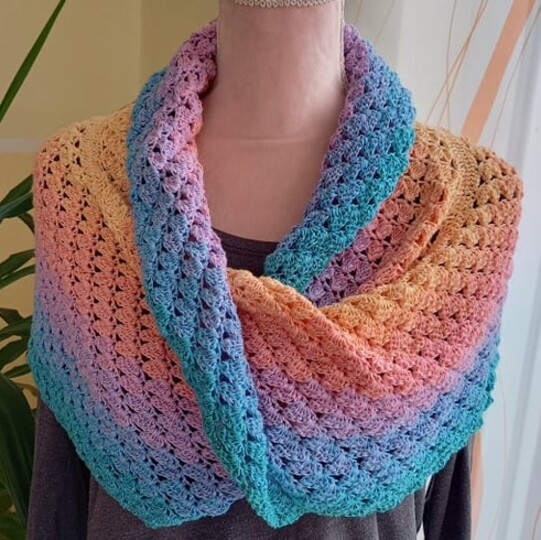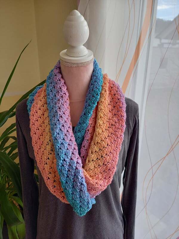 Der Möbius passt locker zweimal um den Hals, kann aber auch beliebig verkleinert oder vergrößert werden.