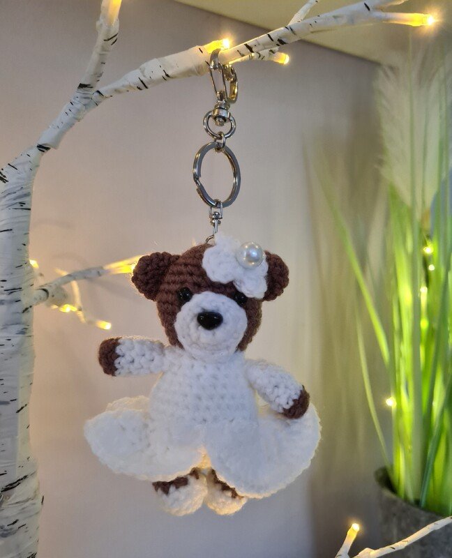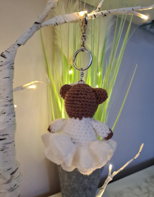 Mit der Lisa Premium Wolle und einer 3.0 Häkelnadel misst der Schlüsselanhänger eine Größe von ca. 11 cm Höhe. Die Bären