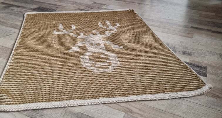 Die Babydecke mit dem süßen Elchmotiv wird in der Schattenstricktechnik gestrickt. Das Muster entsteht durch unterschiedliche Farben und dem Wechsel von rechten und linken Maschen.