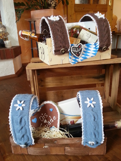 Wer stand nicht schon vor dem Problem, wie verpacke ich eine Flasche Wein, Süßigkeiten oder Anderes.Mit diesen Hosenträgern machst du aus jedem Korb oder jeder Obstkiste ein ganz besonderes Geschenk.