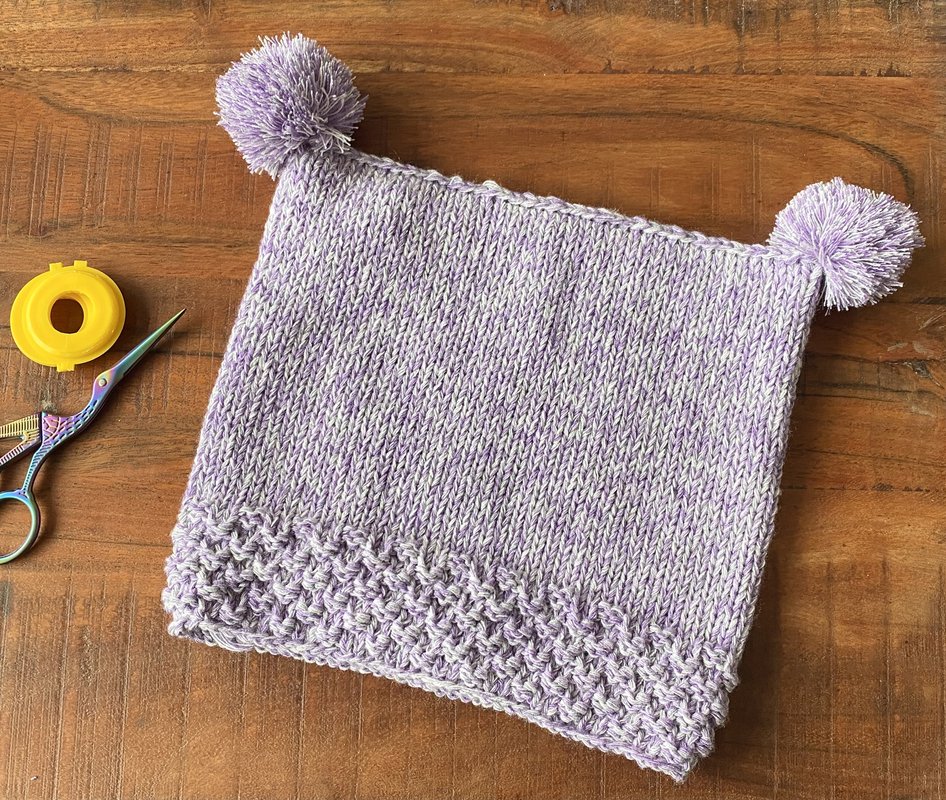 Die süße Mütze ist ideal für zwischendurch. SIe wird in Runden gestrickt und kommt ganz ohne Abnahmen daher.