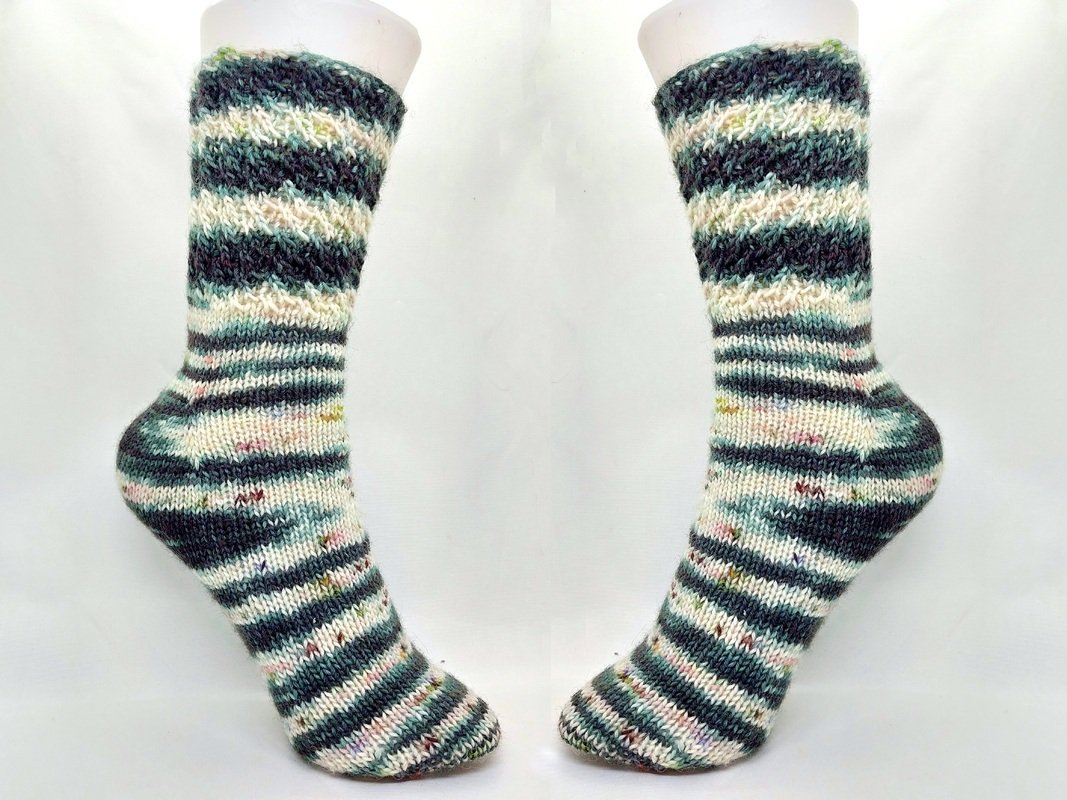Auf Kundenwunsch gibt es jetzt die neue Fixe Ferse (Top Down, 6-fach Sockengarn) mit Video vom Schaftmuster bis zur Spitze. Es ist die Fixe Ferse "Waldläufer" mit einem schönen Muster entstanden.