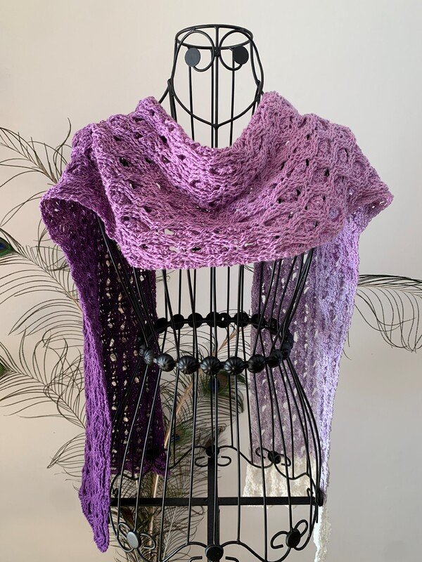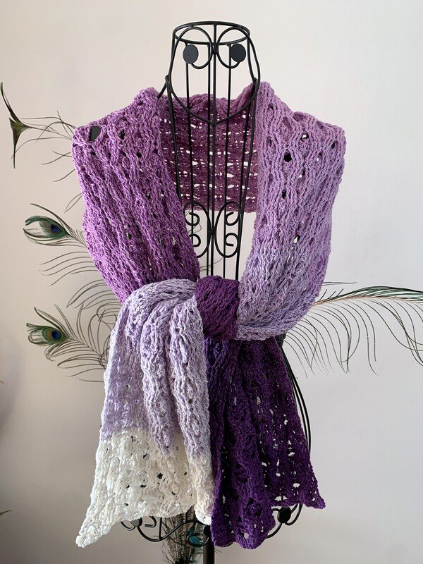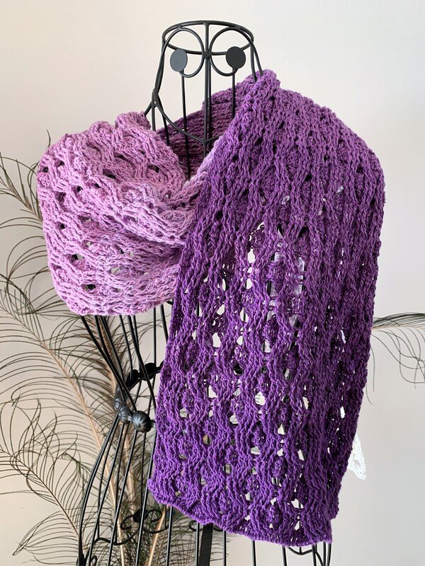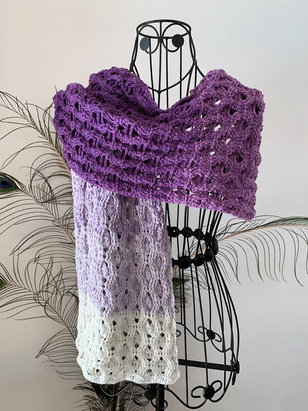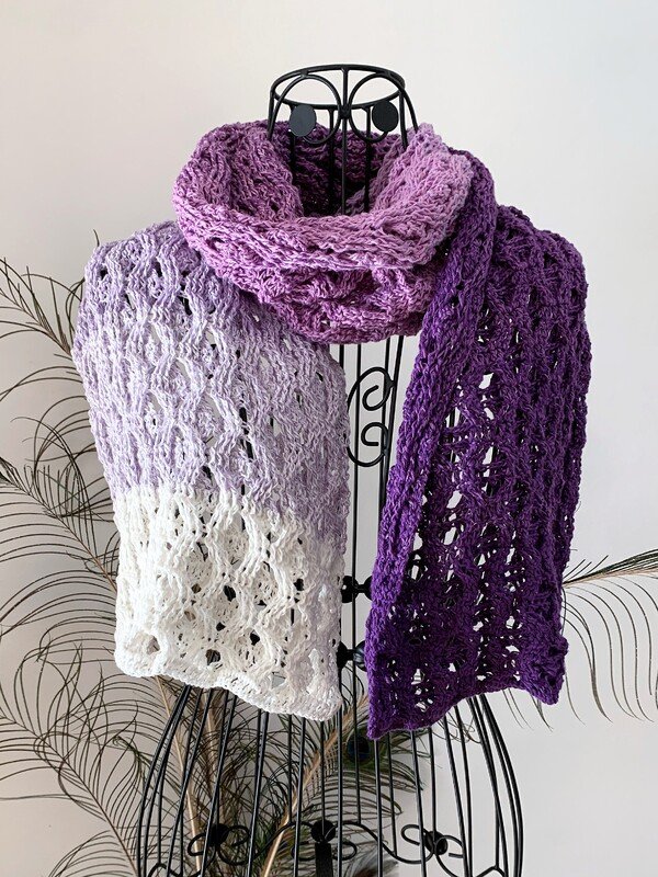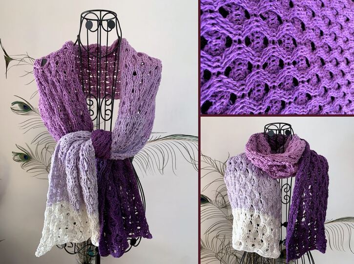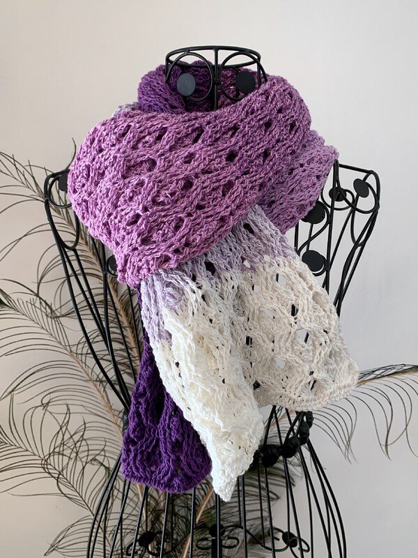 Der Schal besteht aus einem sich wiederholenden Mustersatz, daher können die Breite und die Länge des Schals sehr einfach angepasst werden.