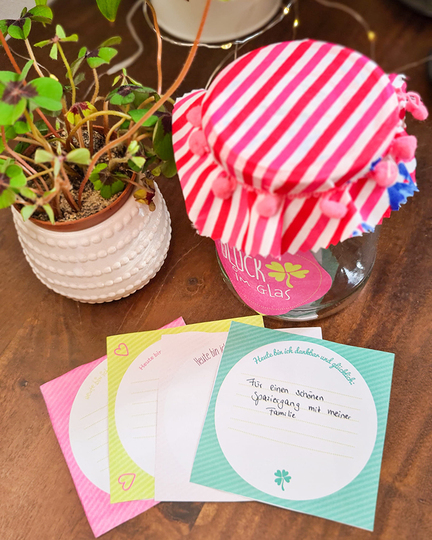 Mit diesem E-Book bekommst du eine Vielzahl an Druckvorlagen und Ideen um dir ein Glücksglas zu basteln. Darin sammelst du all die glücklichen Momente für die du dankbar bist, Träume die du verwirklichen konntest oder Dinge, die du schon immer mal machen wolltest. Am Ende des Jahres leerst du dein Glas aus und wirst sehen was für ein glücklicher Mensch du bist und was du alles erreicht hast!