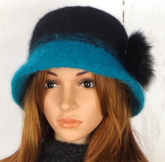 Erst gestrickt - dann in der Waschmaschine mit 40 Grad gewaschen und verfilzt. Dadurch wird dieser tolle Hut wetterbeständig und ist auch bestens an Regen- und Schneetagen geeignet.