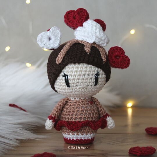 "Cupcake Caroline" wird bei angegebener Wolle und Häkelnadel ca. 12 cm groß (mit Herzstecker ca. 13 cm).
