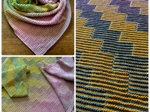 Das Streifentuch Bumblebee wird nur aus rechten Maschen gestrickt und die Zumahme durch Maschenverdopplung (kfb).