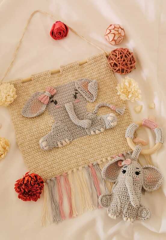 Passend zu meiner Anleitung für die Babyrassel Elefant Fiona, gibt es jetzt den Wandhänger. So kannst du nicht nur Babys beschenkten, sondern auch größere Kinder. Denn der Wandhänger eignet sich wunderbar als Deko für das Kinderzimmer. Du kannst auch ein Außergewöhnliches Set kreieren, indem du sowohl die Babyrassel (diese gibt es in separat zu erwerben) als auch den Wandhänger häkelst.
