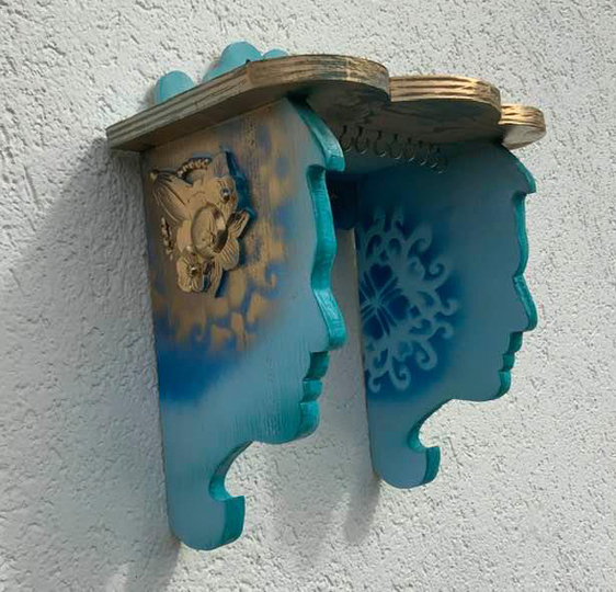 2 hübsche Decoelemente aus Holz (habe ich auf dem Flohmarkt gefunden)