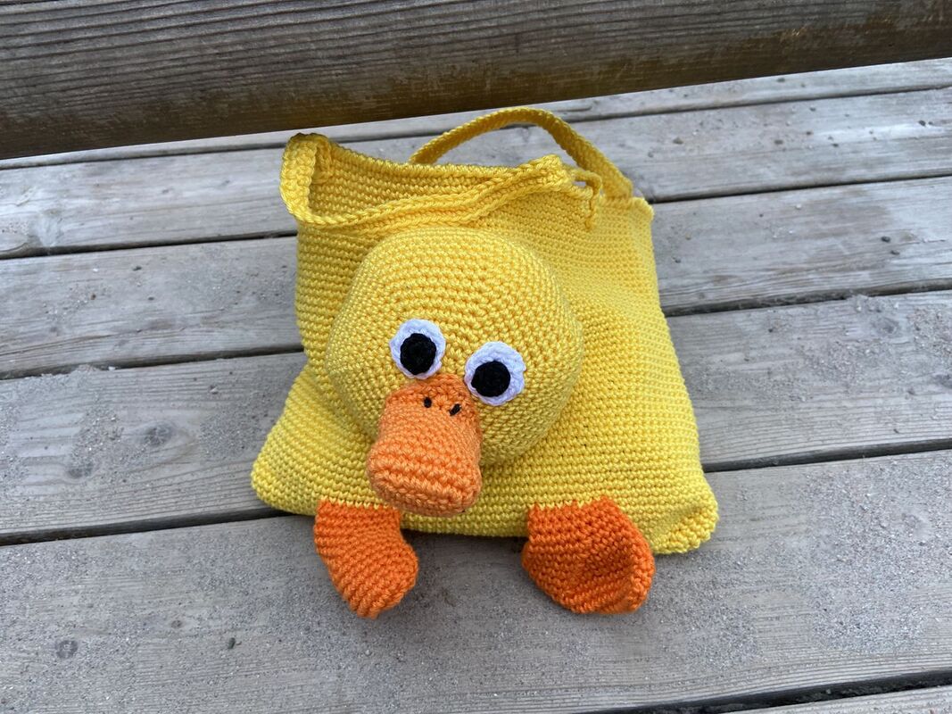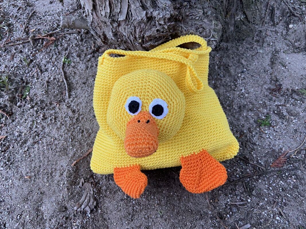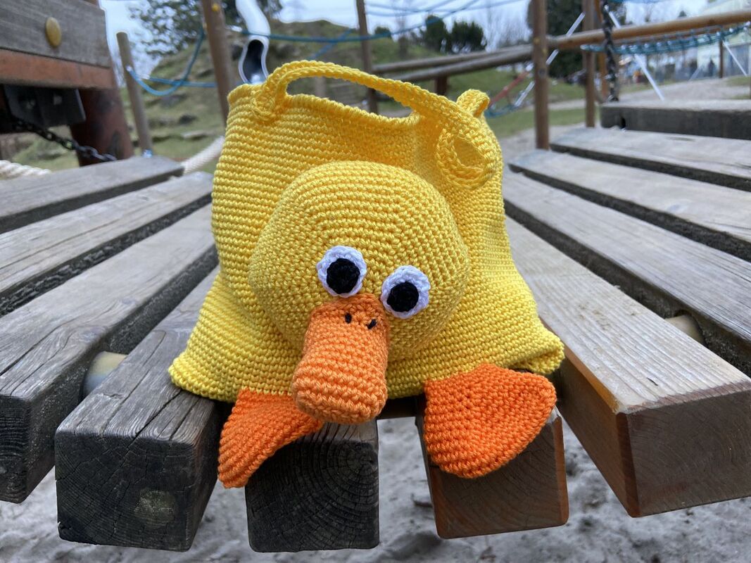 Ein Schokohase, ein paar bunte Eier: Alles hat Platz in der farbenfrohen Ostertasche "Ente".
