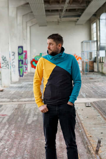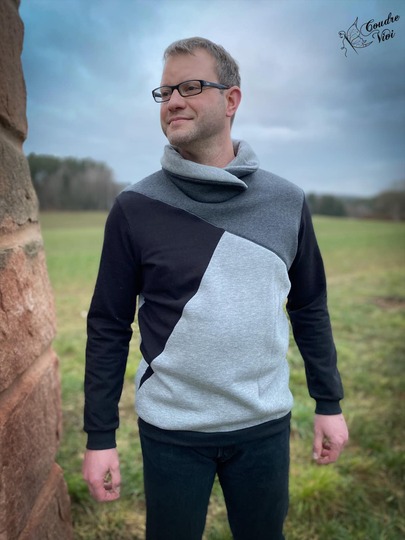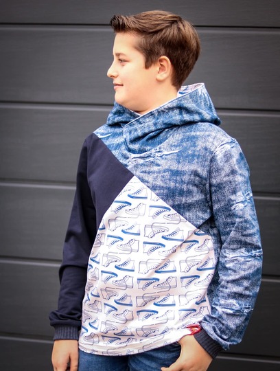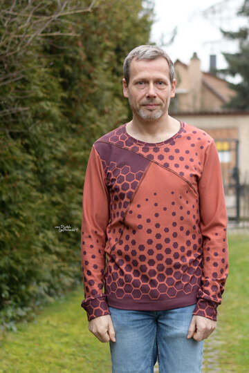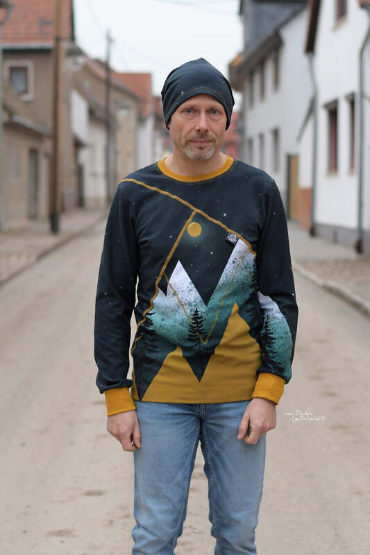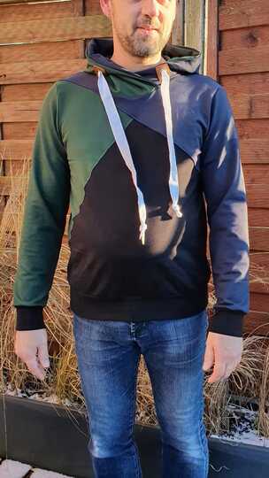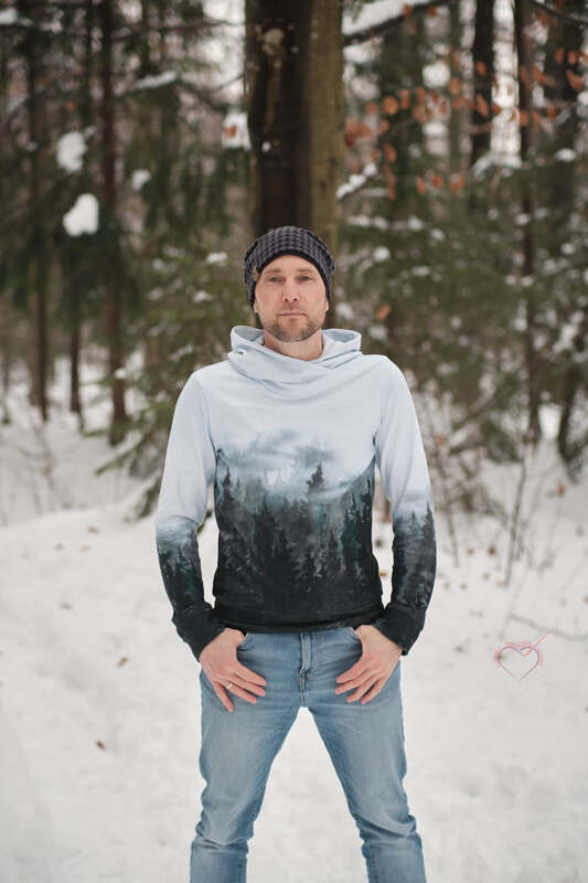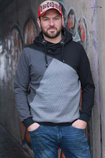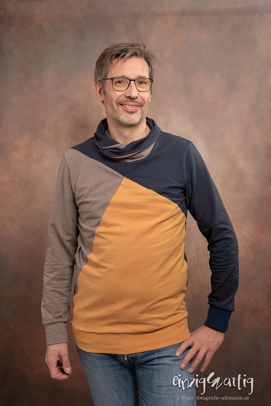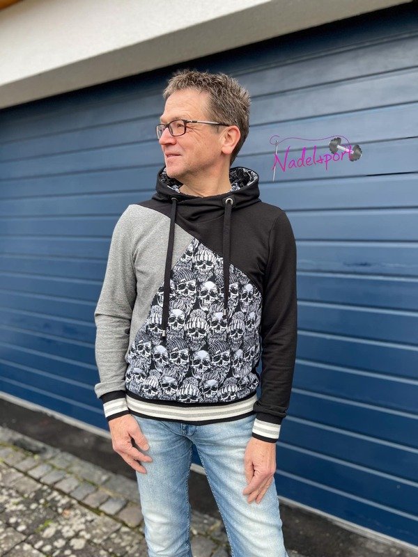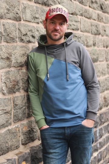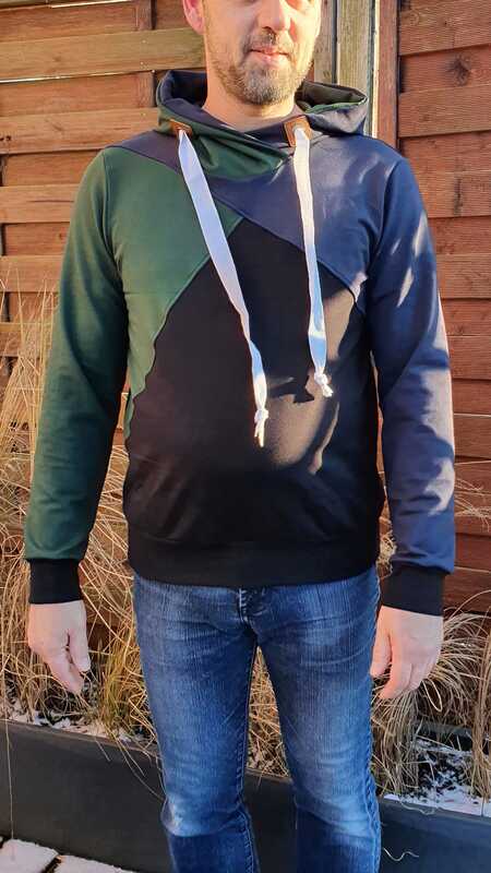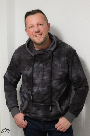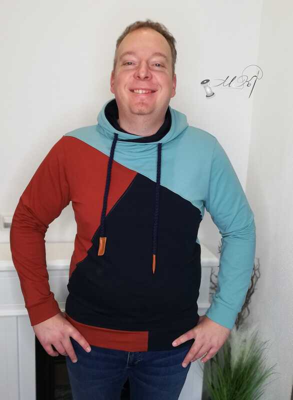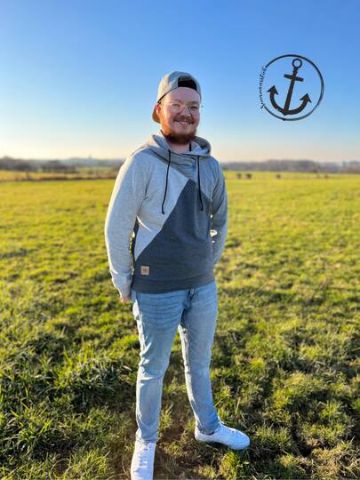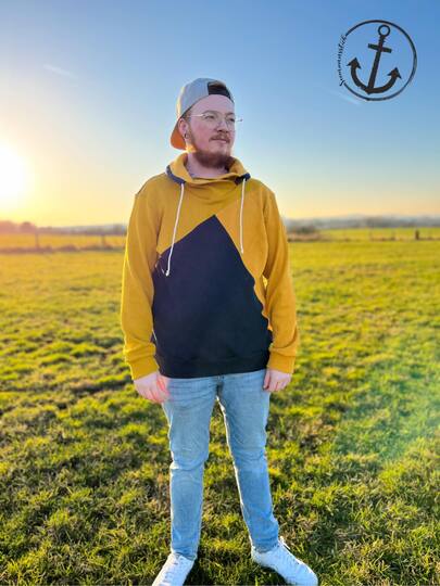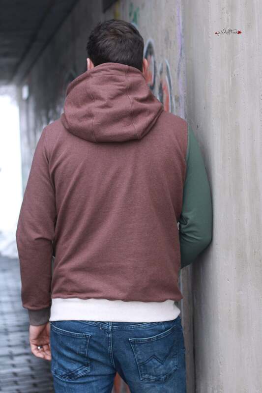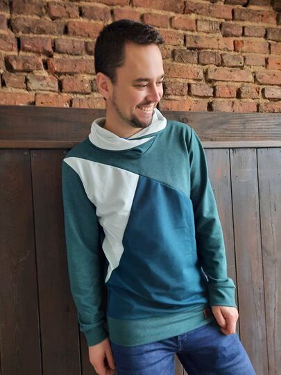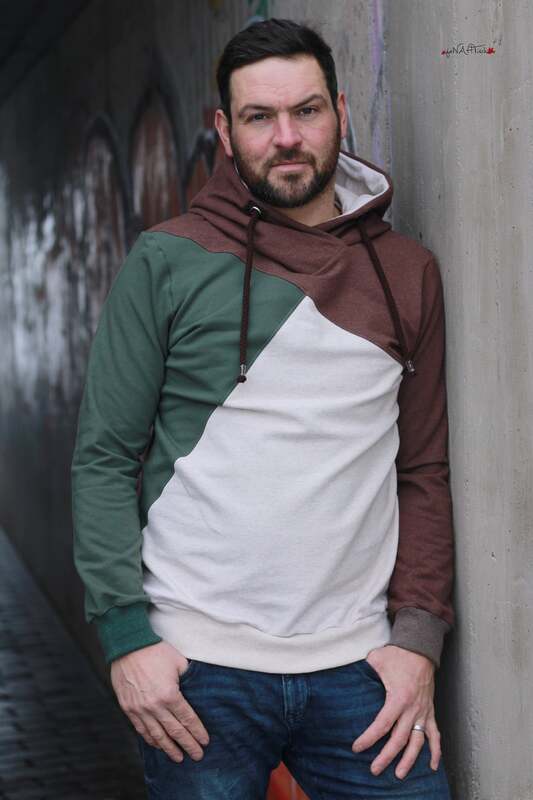 SCHIO MEN bekommst du in den Größen XS-XXXL. Der Schnitt besticht durch seine Teilungen. Natürlich kannst du auch ohne Teilung nähen. Im Schnitt ist eine Kapuze und ein Kragen enthalten. Es besteht auch die Möglichkeit nur mit Halsbündchen zu nähen.