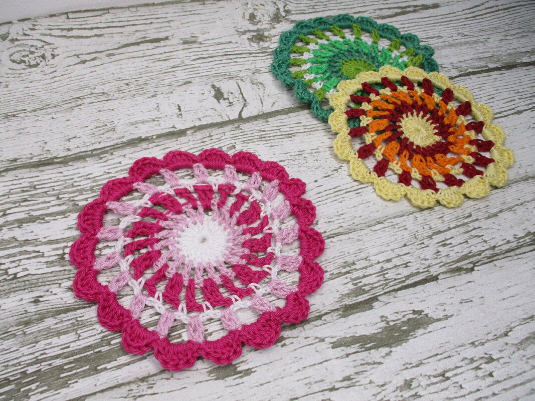 Einfache Bild an Bild anleitung zum nach häkeln dieses kunterbunten Mandalas.
