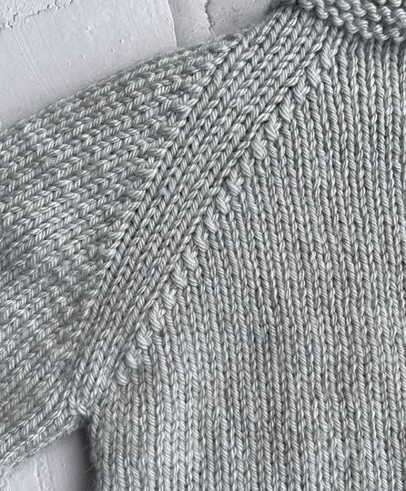 Der Pullover wird komplett in Reihen von unten nach oben gestrickt. Zuerst wird der Rumpf gestrickt, dann werden die Ärmel eingesetzt und dann beginnst du mit der Raglanschräge. Da die ersten Reihen etwas kniffelig zu stricken sind, stricke ich die ersten Reihen immer mit 2 Rundstricknadeln. So kannst du bequem über die Ärmel stricken, ohne dass du dir die Finger verränkst.