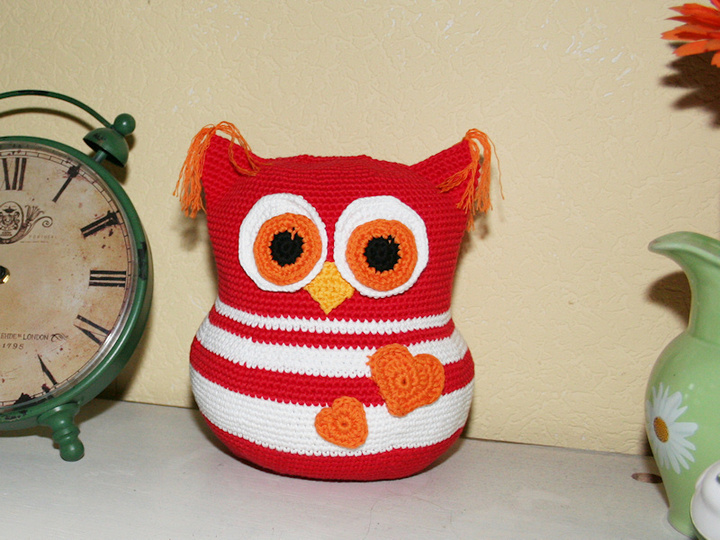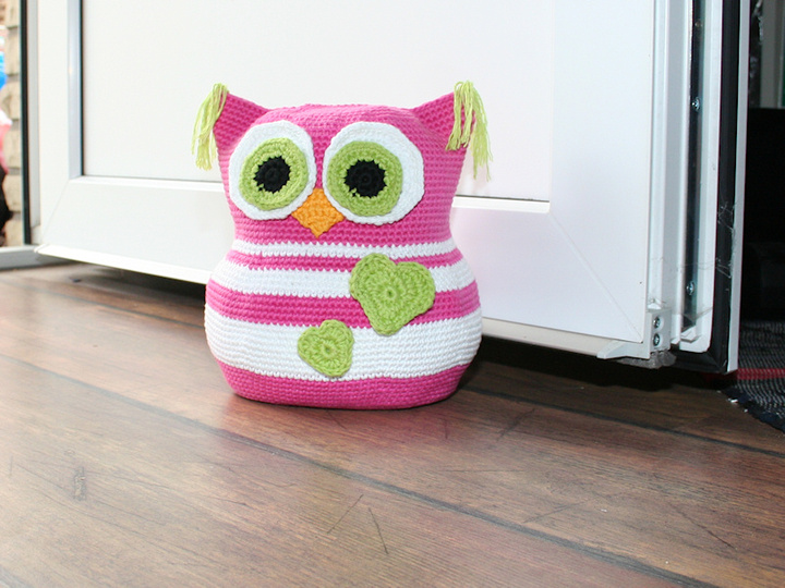 Wenn du die Eule komplett weich ausstopfst, wird sie nicht nur leichter, sondern auch ein schönes Kuscheltier. Die Türstopper-Funktion geht dann allerdings verloren. ;)