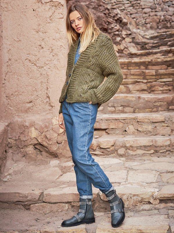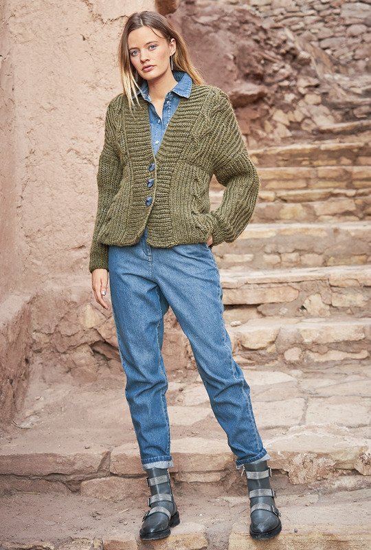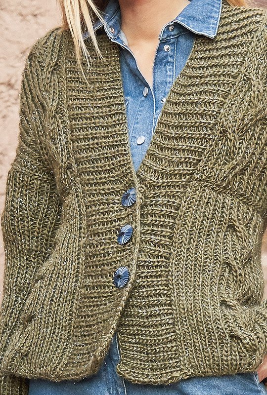 Luxus mit Wohlfühl-Faktor: Bei dieser "patenten" Jacke mit Zöpfen haben wir ein sehr weiches Schurwollgarn gewählt, dessen eingearbeitete, silberne Glanzlichter sich ganz dezent in Szene setzen. Zöpfe an sich sehen schon sehr gut aus, doch diese Patent-Zöpfe sind etwas ganz Besonderes, sie werden außerdem nach der halben Länge versetzt. Der Cardigan hat an den Seitenlinien Schlitze und im oberen Bereich überschnittene Schultern. Die Verschlussblende bildet eine breite Rippenborte. Die Anleitung kannst du für die Größen 34/36, 38/40 und 42/44 haben.