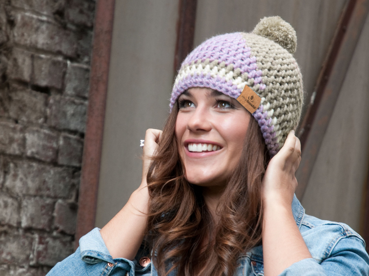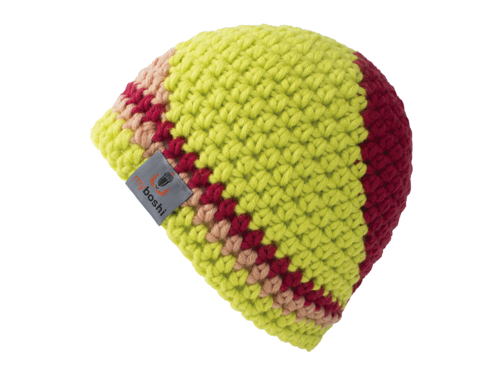 Die Mütze Kyoto überzeugt durch das bunte Spiralmuster in 3 Farben. Durch die Richtungswechsel beim Häkeln stellt die Mütze eine schöne Herausforderung für fortgeschrittene Häkler_Innen dar.